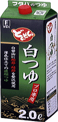 Product No.F7231 Product nameFDonDon series Shiro Tsuyu 2L Main Ingredient : Soy sauce, Dried bonito, dried mackerel, Dried sardine, Dried bonito extract, Dried sardine extract Packaging : 2L/bottle~6bottles/CTN Size of CTNFW284 ~ D199 ~ H348 mm Weigh of CTNF14.7 ‡s JANcodeF4960002048065 Expiration dateF1 year from manufacture day |